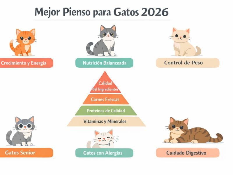 Si tienes un gato y quieres asegurarte de que come bien, este artículo es para ti. Elegir el mejor pienso para gatos no es tan sencillo como parece: el mercado está lleno de opciones con packaging atractivo y promesas difíciles de verificar, y no todas las marcas populares son las más nutritivas. En esta guía analizamos los mejores piensos para gatos en 2026, explicamos qué ingredientes importan realmente, qué diferencia un pienso de calidad de uno mediocre y cuál te conviene elegir según el perfil de tu gato. Sin rodeos y sin publicidad encubierta.